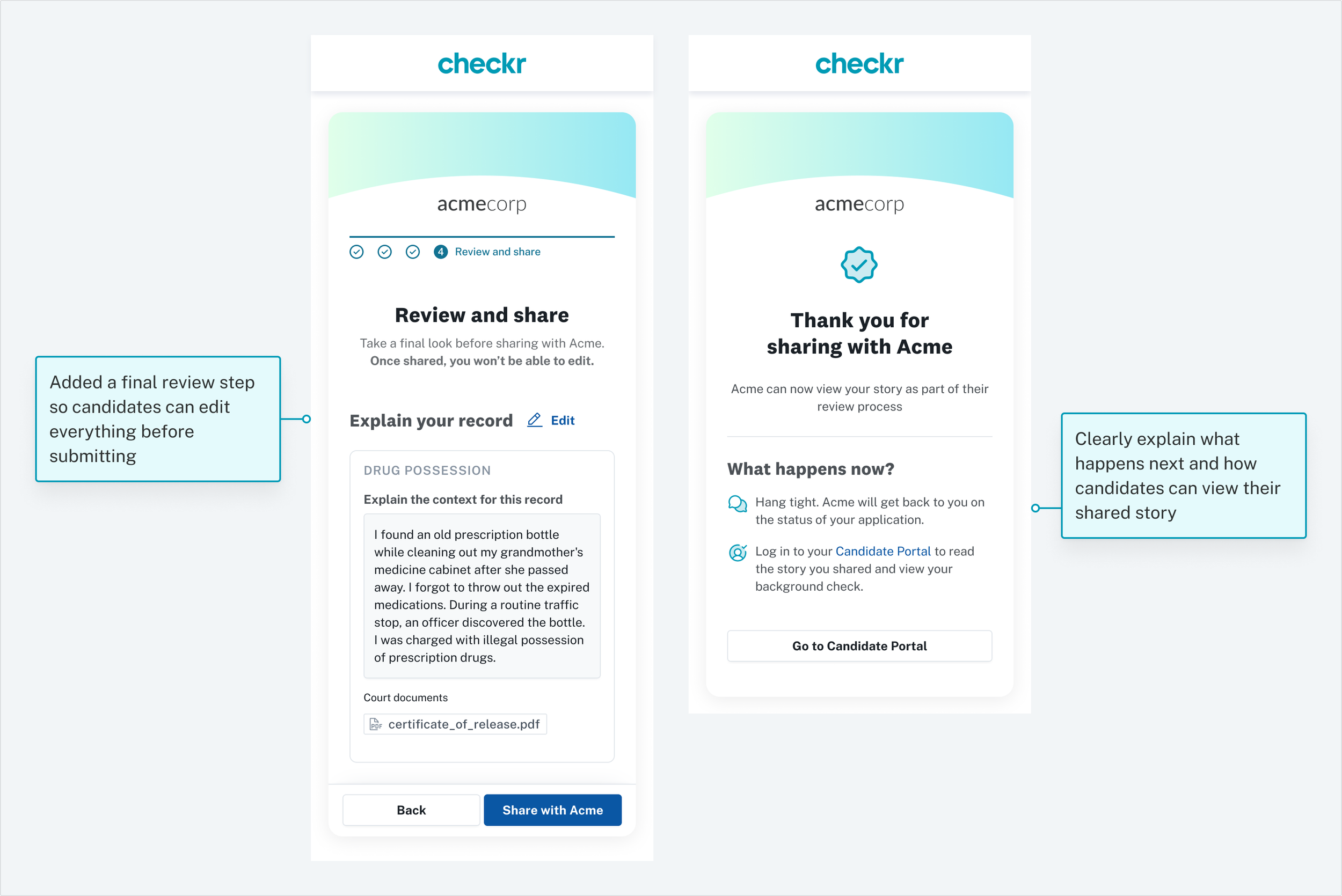 I partnered closely with our legal and compliance to design Candidate Stories.